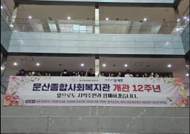 파주시문산종합사회복지관 개관 12주년 기념 대형 현수막 게시