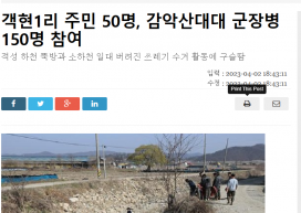 객현1리 주민 50명, 감악산대대 군장병 150명 참여